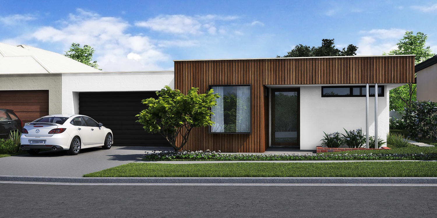 - Modern front elevation featuring 39 courses composite timber cladding system